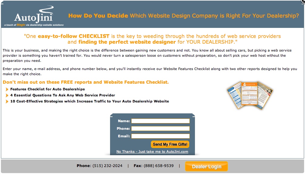 This page is more than a request asking for an email address. This squeeze page entices the prospective customer with information that can only be obtained by providing choosing the email opt-in. (Gifts are often used in place of information to entice viewers to sign up). The viewer has to go through the squeeze page to get to the website, or to a select area of a website.